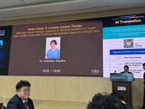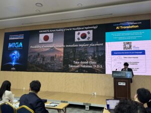 今回参加したは去年に引き続き2回目となります。発表された先生は八尾市で開業されているtakaデンタルクリニックの中谷貴範先生と東京都北区にある王子歯科クリニックの奥寺俊充先生です。中谷先生とはOSSTEMのコースで一緒にさせていただいています。本当にしっかりとした先生でいつも僕の歯科医師人生の指針とさせていただいておいる方です。そして奥寺先生は僕の出身大学と部活の先輩で、OSSTEMでもそうですし昔から大変お世話になっている大先輩です。僕がインプラントを行っていなかったときに、先生について韓国で勉強しに行った事が有ります。今こうして別の道を歩んでいてもご一緒できたことは本当に感慨深いです。